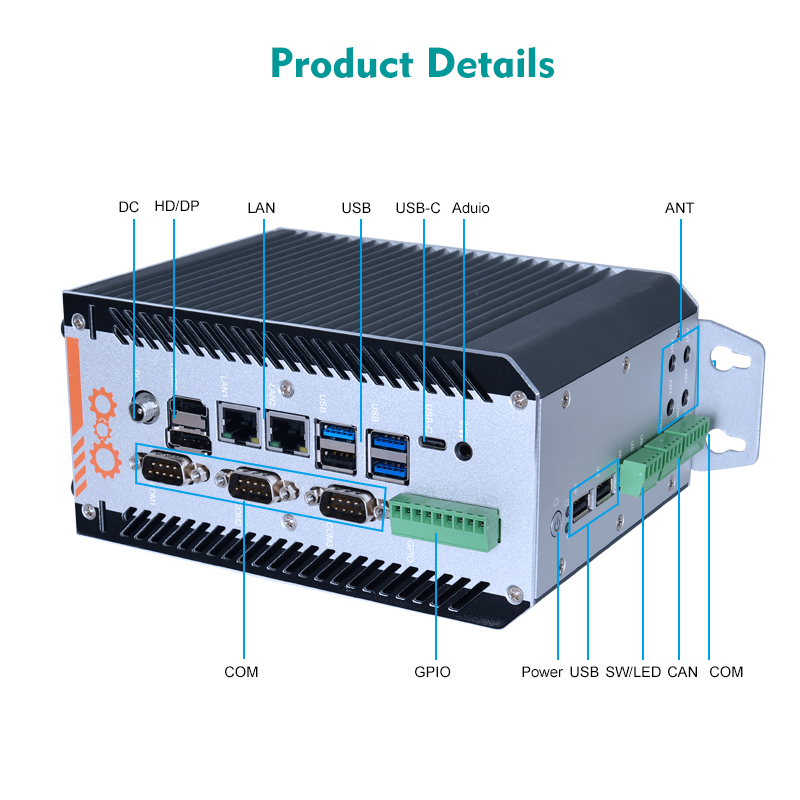 DC Phoenix terminal, 2 x LAN, 1 x HDMI, 1 x Mini DP, 1 x Type-C