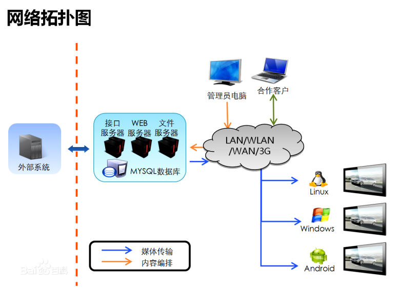 4、使用多種媒體表現(xiàn)方式(視頻,音頻,圖片,動畫),稱窄播系統(tǒng)。
